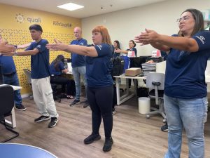 No dia 3 de março, a equipe esteve nas corretoras Duas Etapas e Seg Saúde, em Praia Grande, onde a programação seguiu o mesmo formato, com atividades voltadas ao bem-estar, dinâmica especial para as mulheres e momentos de integração entre os participantes.